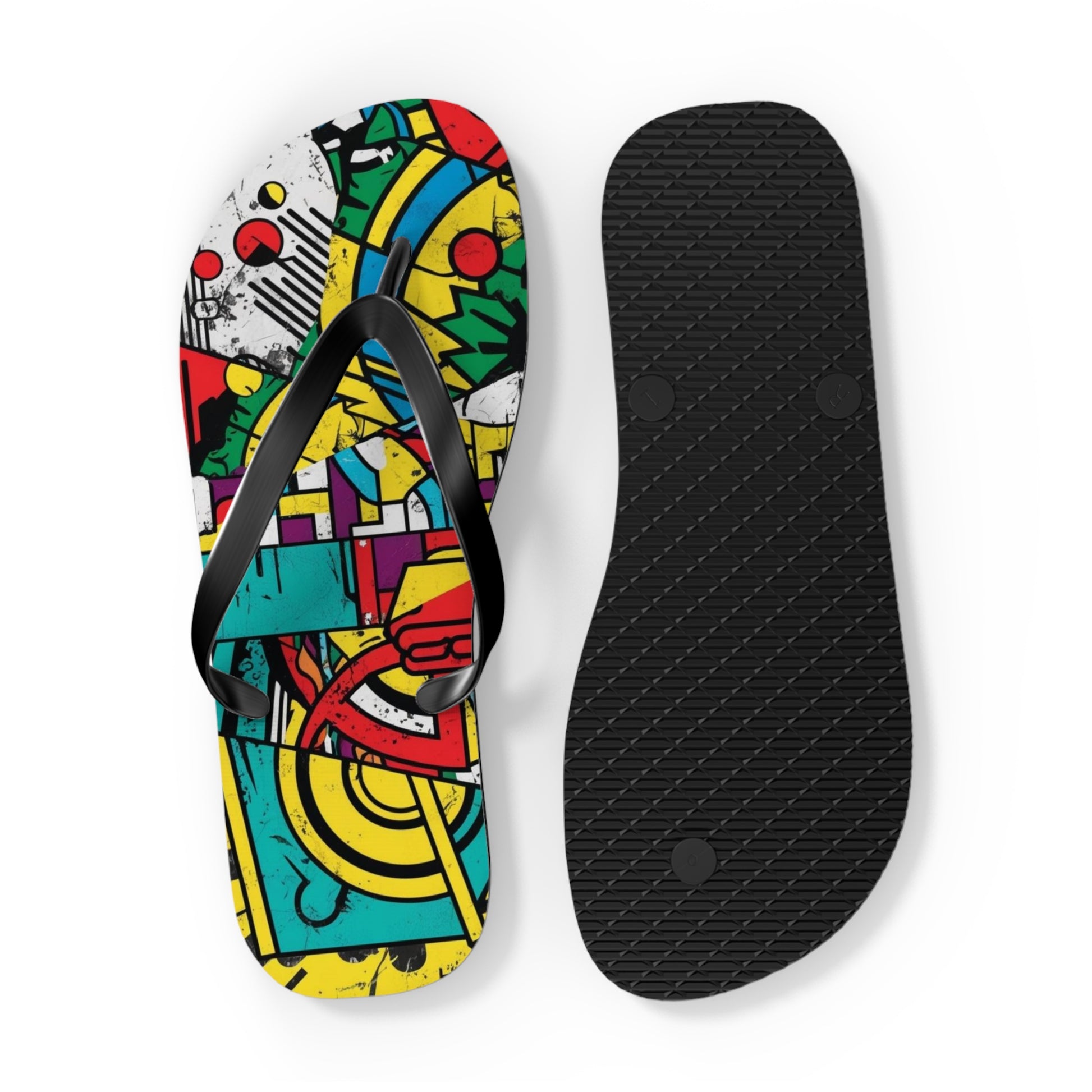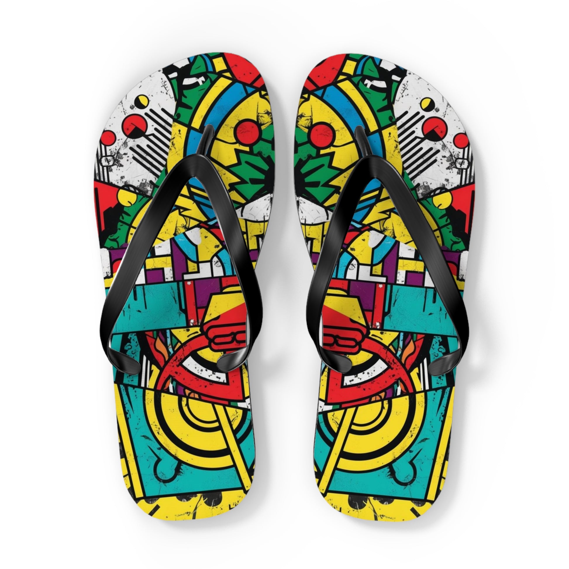 Eclectic Postmodern Flip Flops - Bold Geometric Pattern