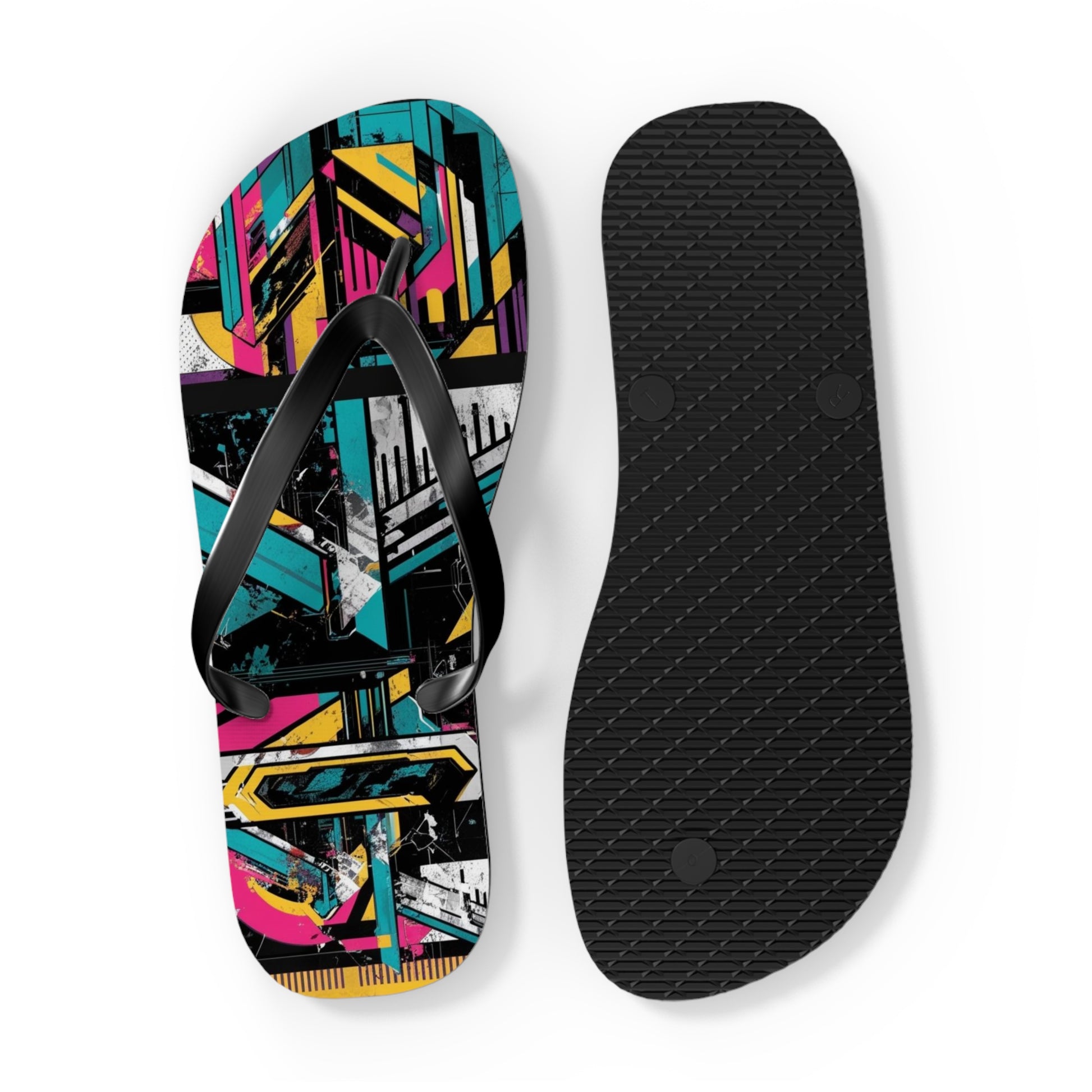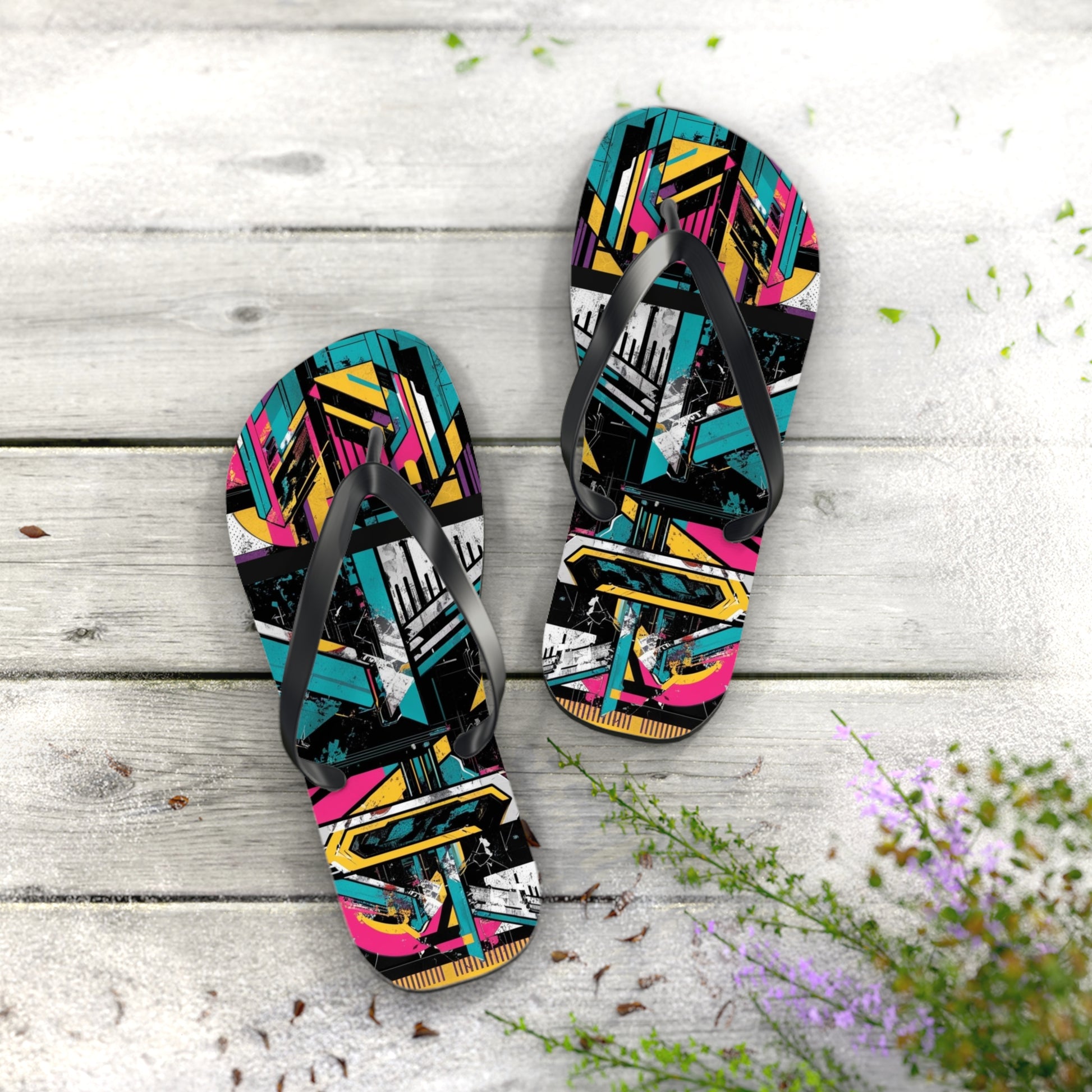 Eclectic Postmodern Flip Flops - Funky Retro Pattern